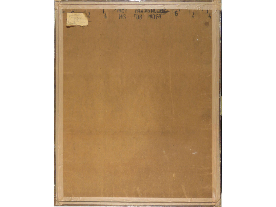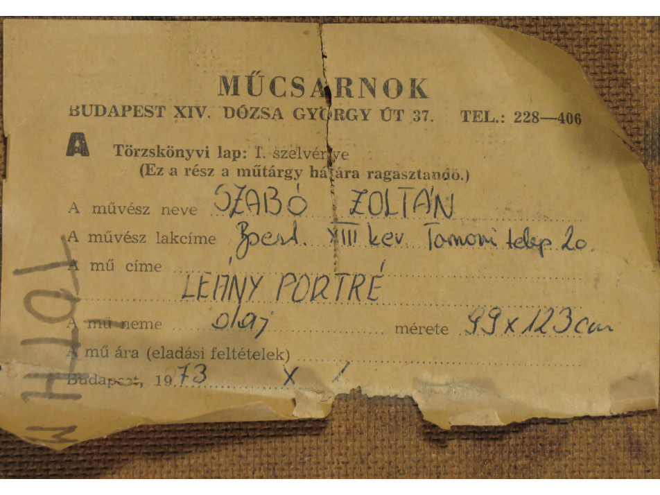 A festmény hátoldalán kiállítási címke: Műcsarnoki törzslap 1973. X.