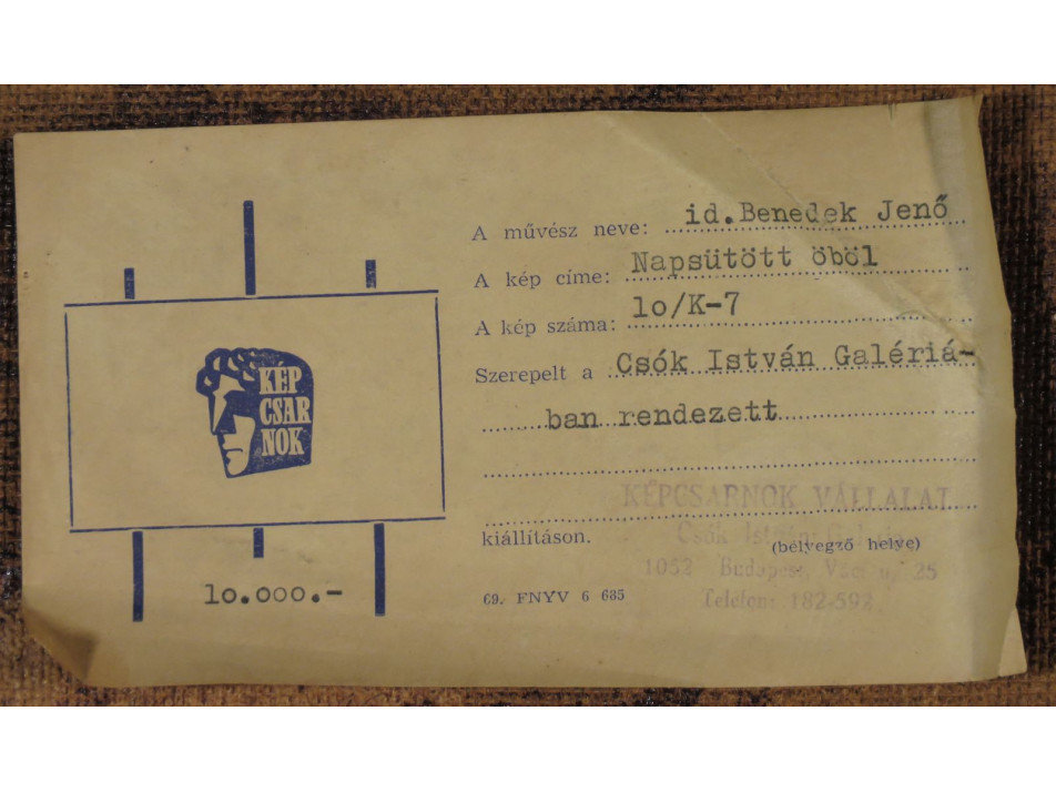 A festmény hátoldalán a Képcsarnok Vállalat raglapja látható.